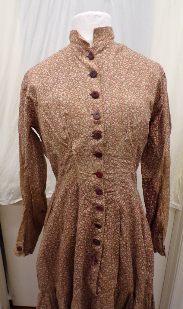 This page took a long time to come to fruition. It started in Fall 2024 as a collaborative group project in HIST 542: Museum Education, to interpret an object in the Fashion Archives & Museum’s collection. Two classmates and I were assigned a pair of dresses formerly belonging to Maria Tyson (pronounced like “Mariah”), a “Quaker” (member of the Society of Friends) in Gettysburg during the Civil War. In our research, my group found that the Meeting in Aspers, PA to which Tyson and her husband belonged is still active. Their secretary put us in touch with one of Maria’s descendants, who was kind enough to invite us to her home to peruse the (well organized!) family archives.