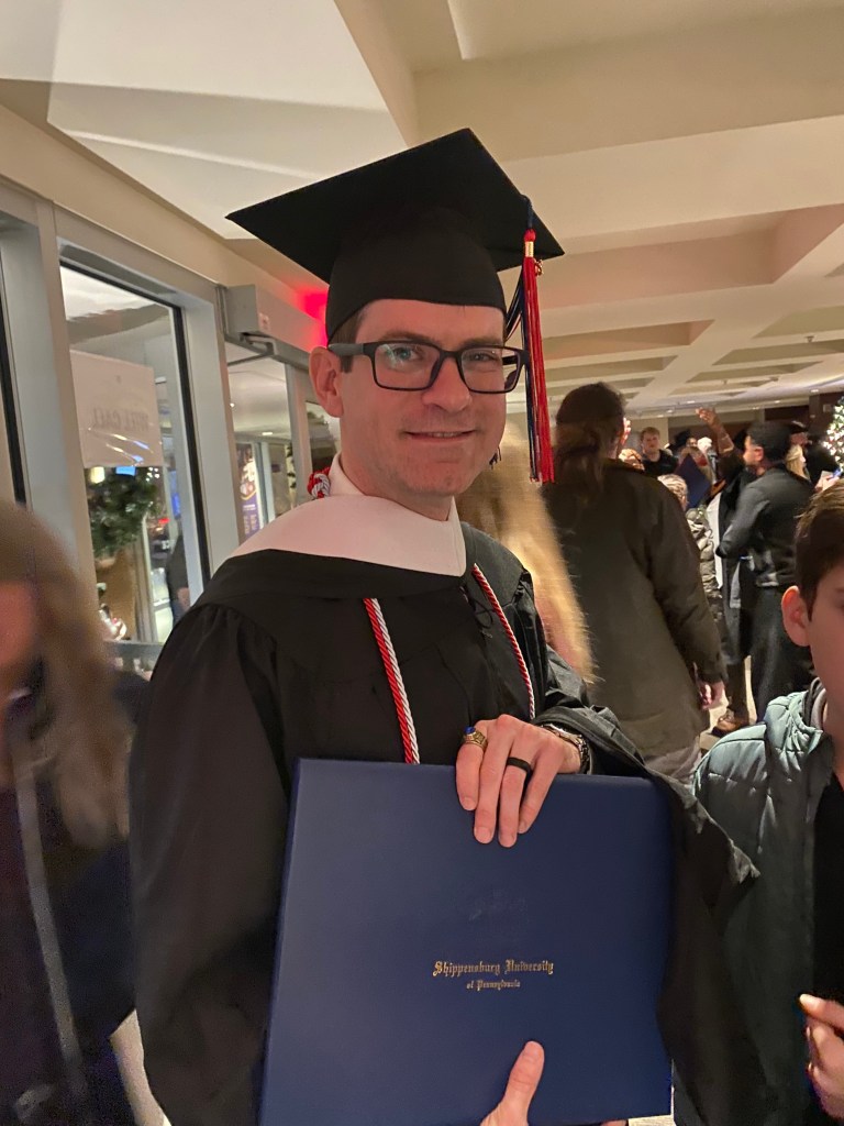 My time at Shippensburg University fulfilled my long-time dream of returning to school for an advanced degree in the historical field, but the degree constitutes no end goal in its own right. I intentionally focused on completing my credits, which was difficult enough combined with work and family responsibilities, but now I can contemplate the future.